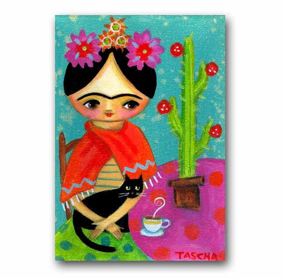 Piece involving a troupe of dancers costumed as frida, who emerge from a flaming papaya and drink the milky tears of a giant cactus (that is also costumed as frida). Lately frida kahlo has invaded my creative world, with original paintings and art dolls. All prints use beautiful archival quality inks, paper prints have white borders for easy framing and are. For more info about my art, please come and visit my blog at mypinkturtle.blogspot.com. En memoria de la gran artista mexicana.