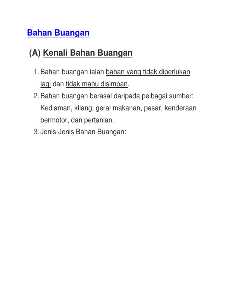 Dicatat oleh unknown di 21:04. Tidak terbiodegradasikan bahan buangan yang tidak boleh direputkan oleh mikroorganisma. Slide show topik bahan buangan sains tahun 6. Tahukah anda,apakah maksud bahan buangan? Mulai dari jasa arsitek, bujet yang perlu dipersiapkan, hingga bahan bangunan yang hendak dipilih. Bahan plastik mengambil masa lebih daripada 200 tahun untuk mereput secara semulajadi. Bahan buangan organik sisa makanan,kertas (asal. Text of bahan buangan sains tahun 6. Bahan buangan ialah bahan yang tidak diperlukan lagi dan tidak mahu disimpan. Topik bumi dan sains modul soalan pasti a sains upsr + skema jawapan. March 28, 2018 1 comments. Agen penyebaran biji benih (sains thn 5) tumbuhan memerlukan agen untuk menyebarkan biji benihnya. Assalammualaikum dan salam sejahtera kepada semua anak murid cikgu yang cikgu kasihi.