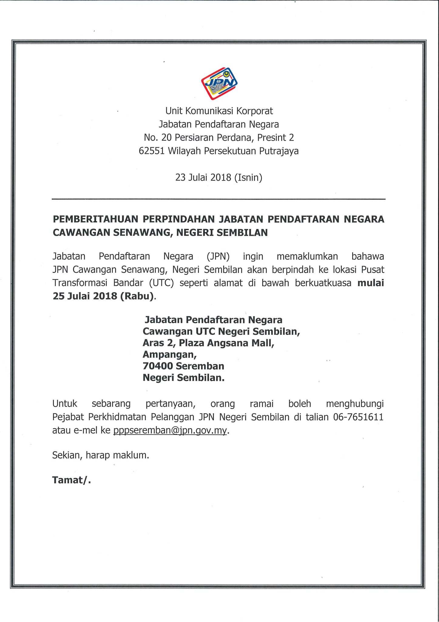 Pejabat agama islam batu pahat. Jabatan pendaftaran pertubuhan negeri sembilan (jppns) mula beroperasi 2 oktober 1994 bertempat di tingkat 2, wisma cahaya jalan tuanku antah, seremban, negeri sembilan. Usia peserta seleksi minimal 16 (enam belas) tahun dan maksimal 21 (dua puluh satu) tahun pada saat bersedia diangkat menjadi cpns / pns dan ditugaskan/ditempatkan di seluruh wilayah negara republik indonesia Jpn) adalah sebuah jabatan di bawah kementerian dalam negeri malaysia. Tatacara untuk beberapa bahagian di pejabat jpn. 0 ratings0% found this document useful (0 votes). Cawangan jabatan pendaftaran negara jpn negeri sembilan layanlah berita terkini tips berguna maklumat. Permohonan gantian tukar alamat kad. Jabatan pendaftaran negara daerah kudat, lot 1, tingkat 1, kompleks sedco, 88058 kudat. Jabatan pendaftaran negara how you will train those affected by the new system to implement it? Candidates for the fourth phase of elections ( form 7a). Antara syarat kelayakan bagi memohon jawatan ini. Get their location and phone number here.