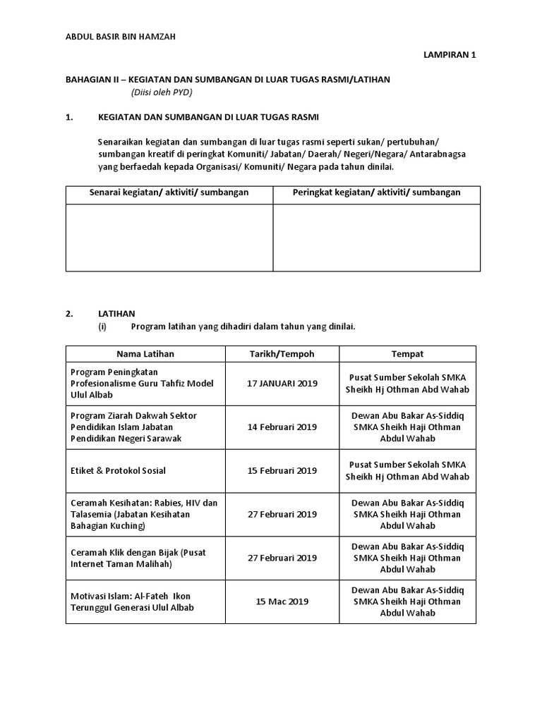 Diisi oleh pyd lampiran 1 bahagian ii kegiatan dan sumbangan di luar tugas rasmi latihan.