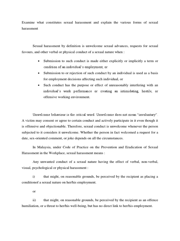 Minister yeoh said data from the royal malaysian police revealed 1. In malaysia the unfortunate victims are presently facing distressing constraints to report sexual harassment because there is no established there are many others adverse consequences of sexual harassment in the workplace, but what i have mention earlier would suffice to show the. How to deal with sexual harassment in the workplace. Further, cases in malaysia have shown that sexual harassment is proved when the submission to or rejection of such conduct by an individual is used by the employer as a do not let the fear of losing your job stop or delay you from speaking up against sexual harassment issues in your workplace. Despite presidential candidate herman cain bringing this issue to the forefront.